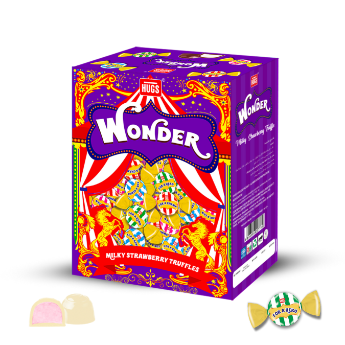 Add wonder to your day with Hugs Wonder Milk Strawberry Truffle Chocolates. These exquisite treats are a blend of smooth white chocolate and luscious strawberry cream, creating a burst of flavor with every bite. Picture yourself opening a box filled with 30 delectable chocolates, each one a masterpiece of sweetness and wonder. The center-filled truffles will tantalize your taste buds and transport you to a world of pure indulgence. Whether you’re celebrating a birthday, Rakhi, Diwali, or simply looking to treat yourself, these chocolates make the perfect gift. They are sure to bring a smile to the faces of kids and adults alike, spreading joy with every bite. So go ahead, add wonder to your day with Hugs Wonder Milk Strawberry Truffle Chocolates. Let each bite be a reminder to savor the sweet moments in life and indulge in a little bit of magic.